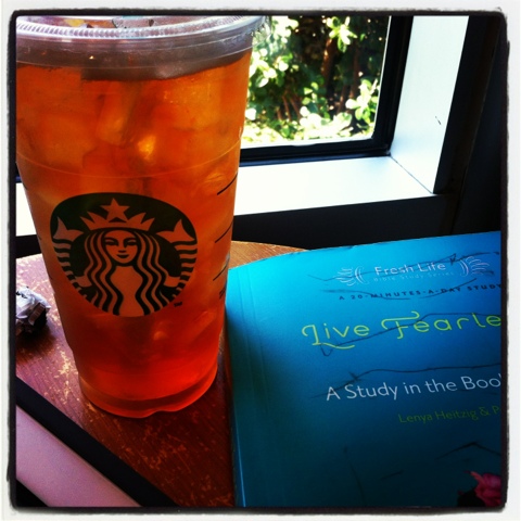 I've been enjoying my ice teas at Starbucks. . . especially since it is in the triple digits! Today, I was able to find a quiet table at one of our local spots so spend some time in Joshua. This is study I got for Mother's Day several years ago, and since I am usually doing a Beth Moore or similar study during the school year, I save this for the summer. It is so refreshing! As you can see, It was made into art by my first born. ha ha. I love getting away for some uninterrupted time. In fact, today, I was reading about how the Isrealites were silent while walking around. That had to be so hard. Then I was challenged to find that quiet and listen to God. That's hard. . . there isn't much quiet in my house. So, it's these kinds of moments that I cherish!